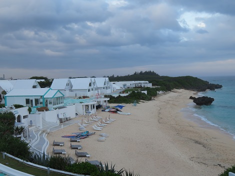 でも海は青く、白い建物が映える。ヨロンブルーも見ることができました。