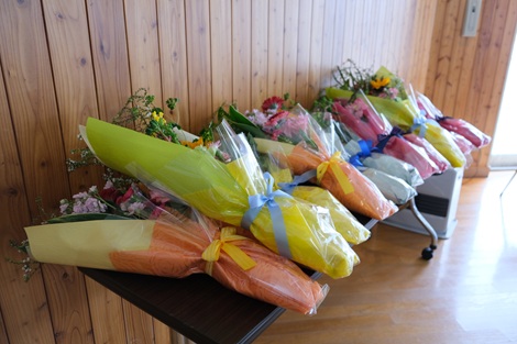三和高校後援会より卒業生に花束。和寒町長さんより手渡されました