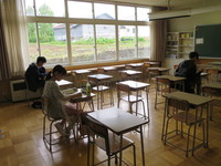 雨のため1,3年それぞれのプログラムは中止になり、待機ということになりました・・・。